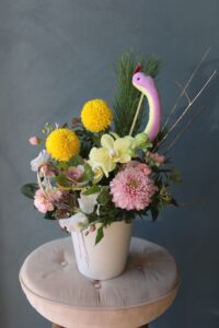 他の季節とは異なる 和のテイストを織り込んだアレンジメント作りを