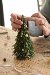 コニファーを使用してクリスマスツリーをお作りいただきます。