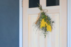 春の使者のミモザを取り入れて 壁に飾るスワッグを作ります。
