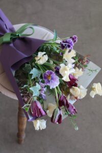 「春の花で束ねる柔らかなブーケ」