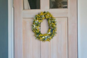 ミモザやドライになる素材を利用してリースをお作りいただきます。